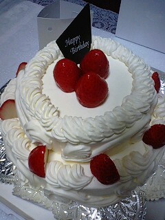 わー!なんて贅沢ー!これは買ってきたケーキです。ちゃんとハッピーバースデーって書かれてます。