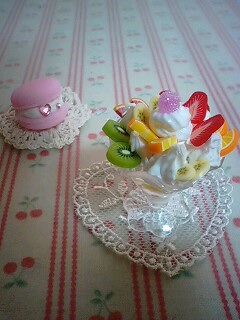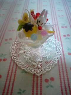 プリンの横に見えるうさぎさんとサクランボはなんとsさんが紙粘土で手作りしたもの。