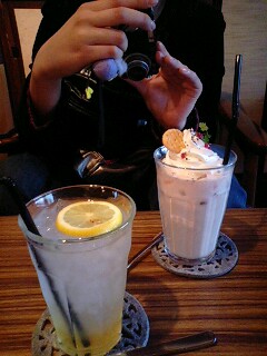 手前は私の頼んだレモネードで(名前なんていったか忘れた;;)奥は(これも名前忘れた;;)レアチーズっぽい飲み物。