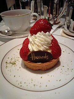 このいちごタルト、すっごくおいしかった!!生クリームが練乳っぽい味で、なかのカスタードクリームとマッチしてるの。いちごも甘かったんだけど、全体的に甘くなりすぎず、上品な味。何よりもタルトがしっとりしていて、硬すぎない。ちゃんとフォークでさせる☆あ、あとチョコレートはビターだった。
