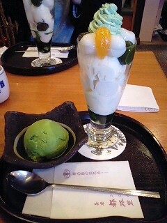 あの有名な!抹茶パフェ(写真右)も食べてきました♪♪なかなか白玉の抹茶が濃い。