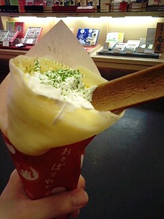 なかにあんこと八橋フレークがはいってて、ぱりぽり食感♪おいしかった♪